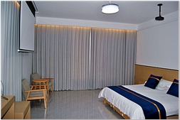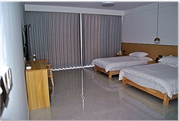 民宿有2棟樓(其中一棟樓正在裝修),正常營業(yè)的有20間客房,房型有家庭套房、大床房、親子套房、標間、單人間等,能同時接待80人住宿和用餐?头空麧崒挸,設施功能齊全。每個房間均配有獨立衛(wèi)生間、電視、空調和無線WiFi,配有中央熱水器,24小時供應熱水,床單被套一客一換。