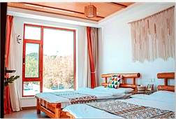 住宿(元/間)贈送潛水票1張 房型 平日價 海天映月海景家庭雙臥套房 1666 竹影相伴海景家庭雙臥套房 1266 霞光落日雙臥家庭套房 1166 云開月朗海景大床房 966 枕上詩書大炕房 399 游客評價:蘇州dazmhsd:民宿就在海邊、環(huán)境很棒、風景勝畫、空氣清甜。房間很干凈,房內的設施齊全,窗戶對著大海,晚上夜景很美。服務態(tài)度很好,美食令人食欲大增,下次還再來。