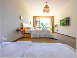 民宿設(shè)施齊全,服務(wù)功能完善,室內(nèi)裝飾到位,客房整潔寬敞,床上用品舒適柔軟,躺在床上可享受山村清晨第一縷陽(yáng)光的沐。黄鸫餐拼氨M情的呼吸清甜的空氣,眺望遠(yuǎn)出或隱或現(xiàn)的云霧纏繞在山巒之中,好一幅山村如畫(huà)的美景。